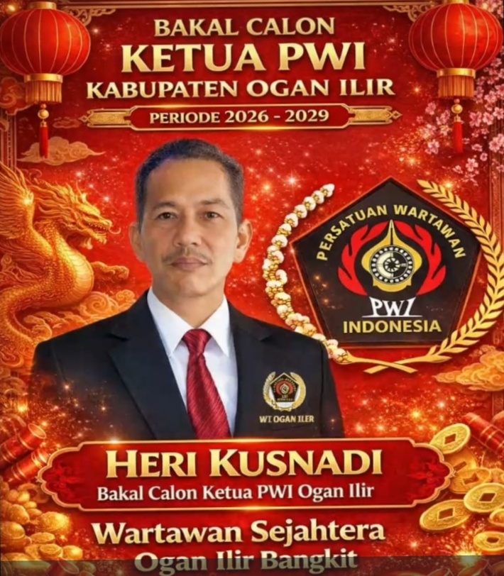 Heri Kusnadi dengan mendapatkan dukungan sepenuhnya dari istri tercinta Rosita Dewi menyatakan kesiapan dirinya untuk maju sebagai Bakal Calon Ketua PWI Kabupaten Ogan Ilir periode 2026–2029. Dengan semangat perubahan dan kebersamaan, ia mengusung visi mewujudkan wartawan yang sejahtera, berintegritas, serta profesional dalam menjalankan tugas jurnalistik.