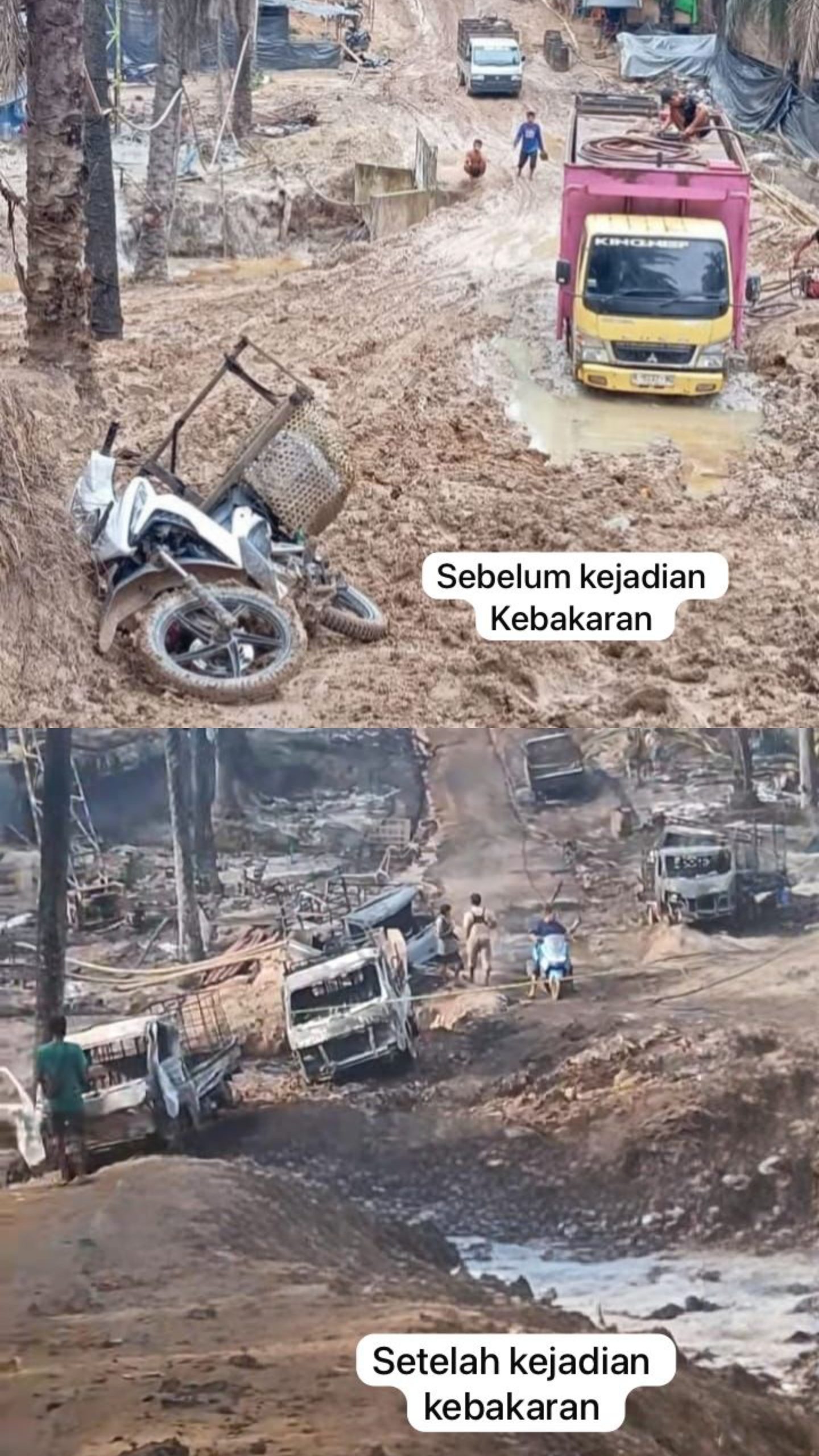 Di tengah kesibukan masyarakat pemain minyak ilegal tiba tiba ada seorang berteriak kebakaran kebakaran tapi api suda membesar karna cepat nya kejadian tersebut sehingga ada berapa unit mobil yang ikut terbakar karna minim nya alat pemadam kebakaran sehingga api cepat menyebar sehingga ratusan sumur ilegal ikut terbakar,